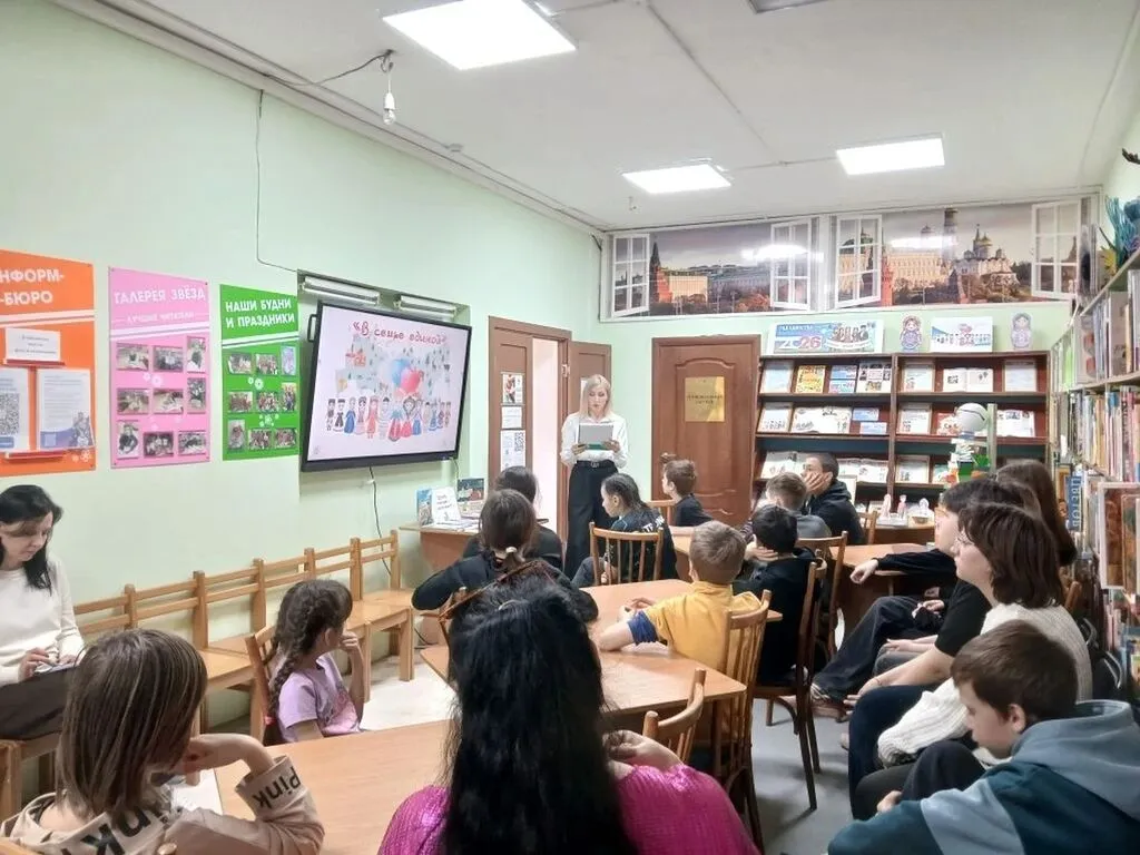 Из рассказа библиотекаря дети познакомились с традициями, обычаями, национальным колоритом и национальной кухней разных народов нашей необъятной Родины. Узнали об многообразие культур и увидели, что Россия — это огромная семья, где живут рядом русские, татары, башкиры, чеченцы, якуты, калмыки и многие другие народы. У каждого — свой язык, свои обычаи, своя музыка. Но есть много общего – семейные ценности и традиции, любовь к родной земле, сохранение памяти о прошлом своего народа. Всех нас объединяет одна Родина, одна история и одно будущее. Участники с большим интересом работали над творческим проектом «Дерево дружбы», в котором отразился многонациональный колорит народностей России.